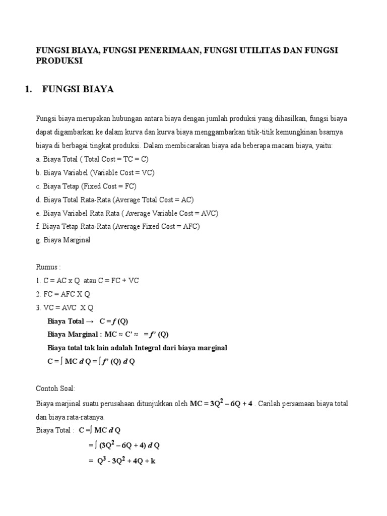 Kumpulan Contoh Soal: Contoh Soal Fungsi Biaya Produksi