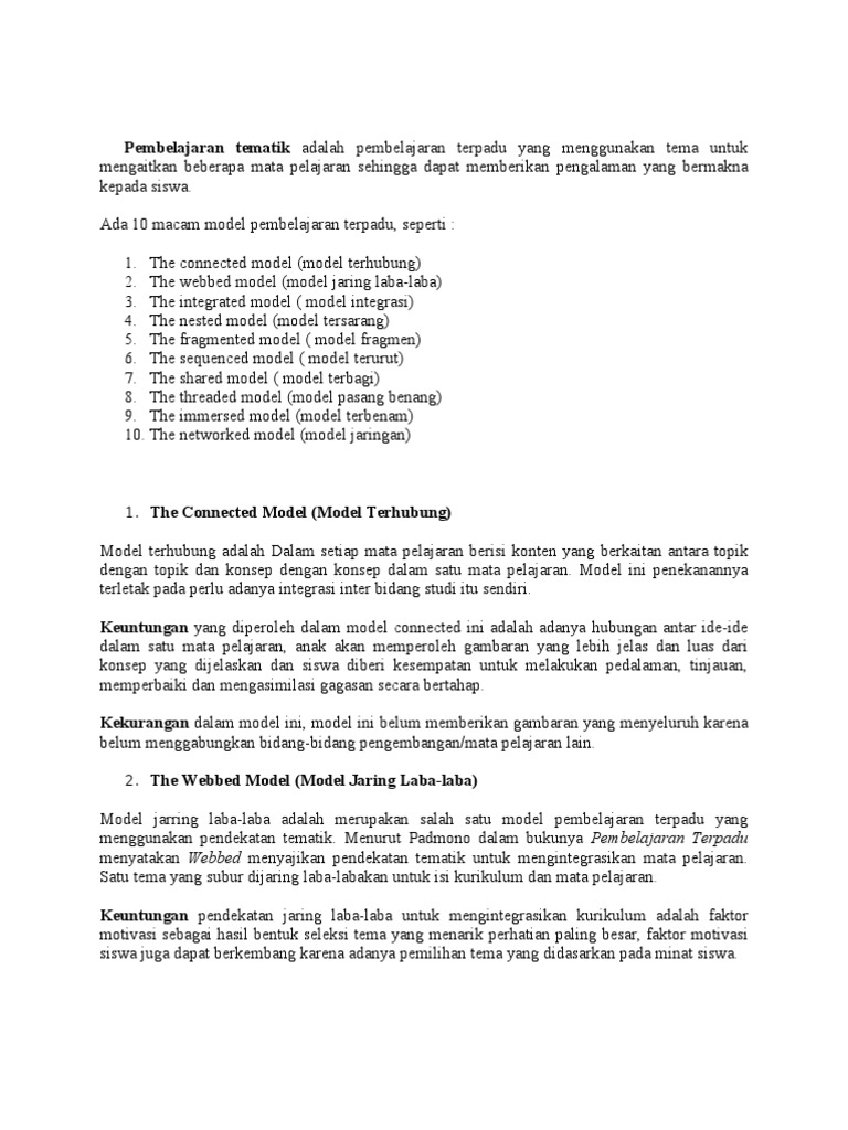 Pembelajaran Tematik Adalah Pembelajaran Terpadu Yang