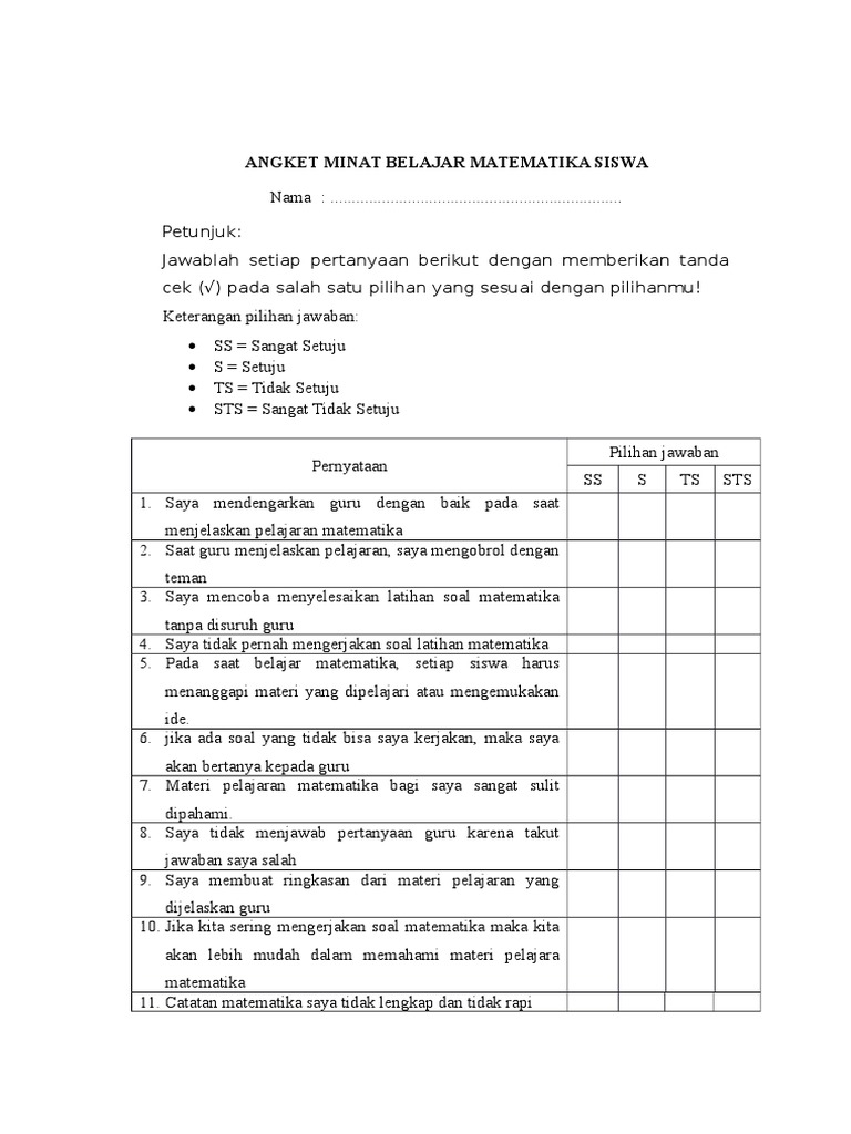 Doc Angket Penilaian Siswa Fika Hati Academia Edu