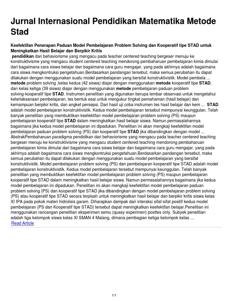 pendidikan matematika jurnal pdf, word document or powerpoint file formats for free.