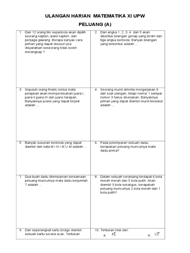 26++ Contoh Soal Ulangan Harian Peluang Kelas 9 – Kumpulan