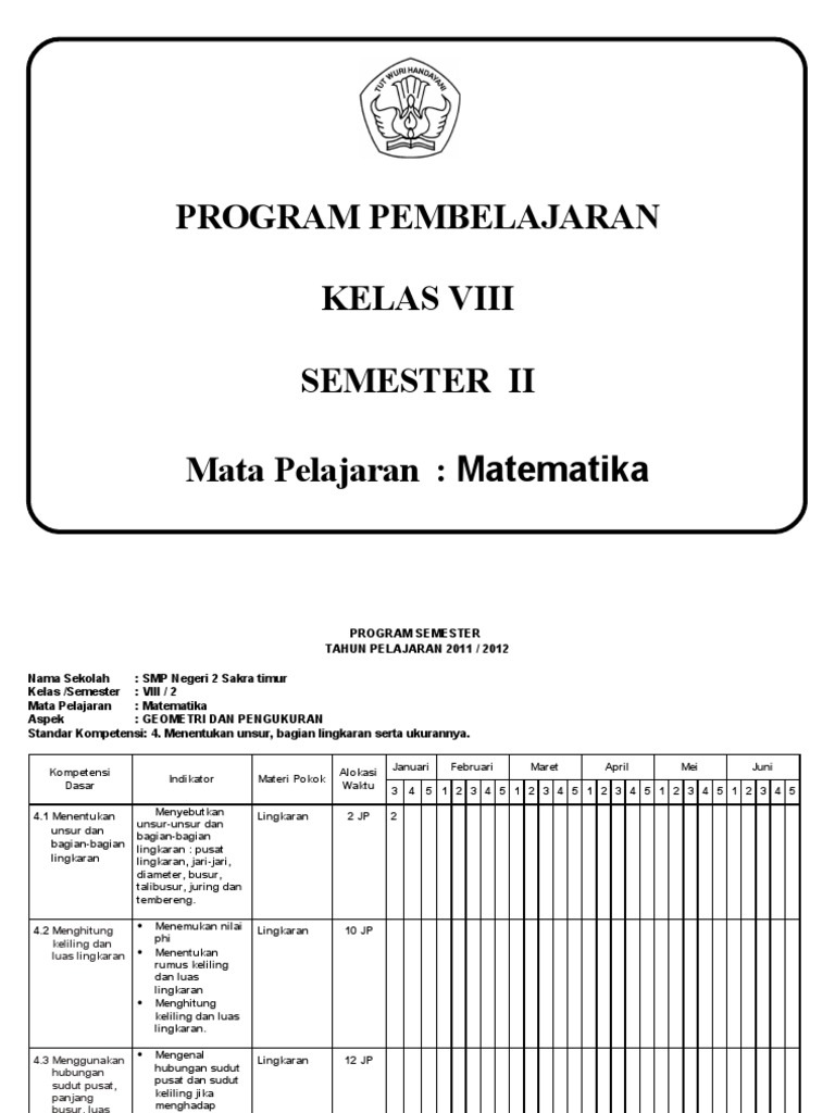 Program Pembelajaran Kelas Viii Semester Ii Mata Pelajaran