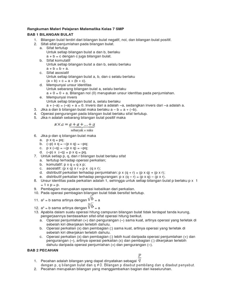 Rangkuman Materi Pelajaran Matematika Kelas 7 SMP Bab 1