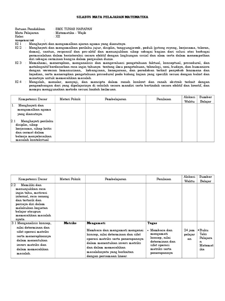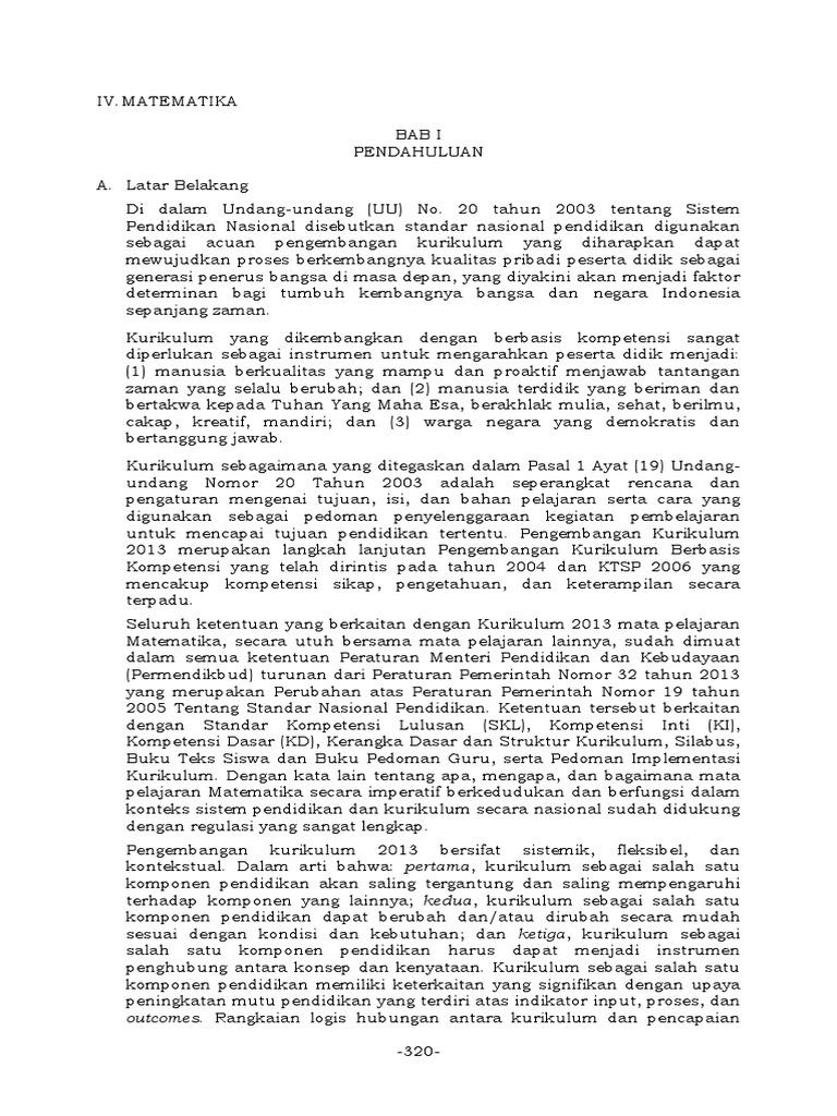 Silabus Mata Pelajaran Matematika: Kompetensi Int