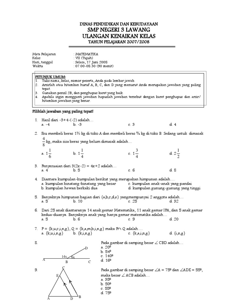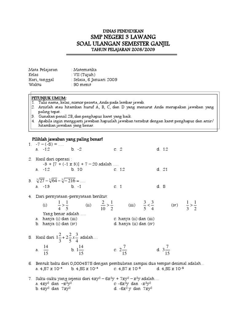 pelajaran matematika kelas 7 pdf, word document or powerpoint file formats for free.