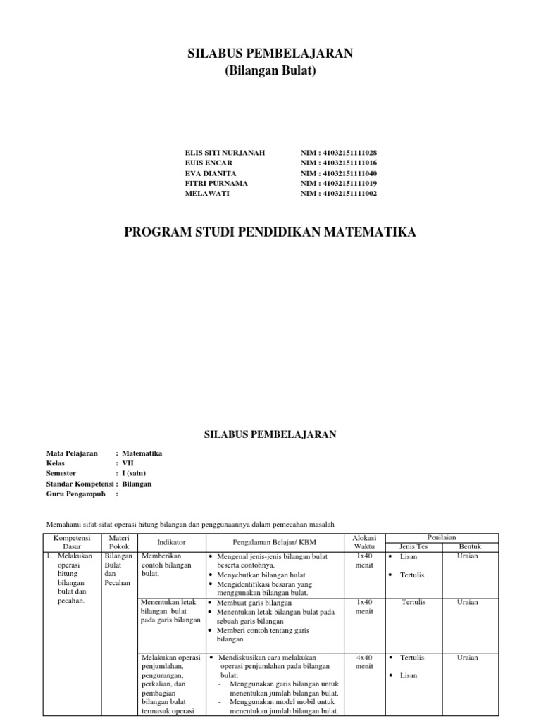 Silabus Bilangan Bulat