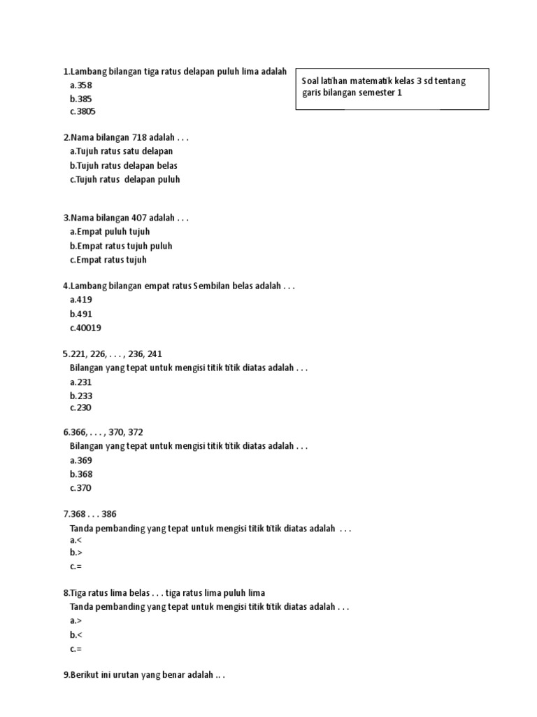 Soal Matematika Garis Bilangan Kelas 3 Sd – Unduh File Guru