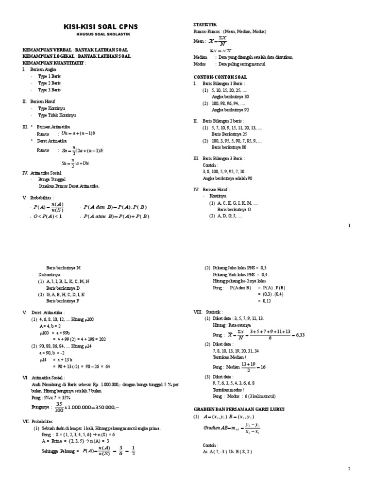 Soal Cpns Mean Median Modus – CPNS Soal Latihan