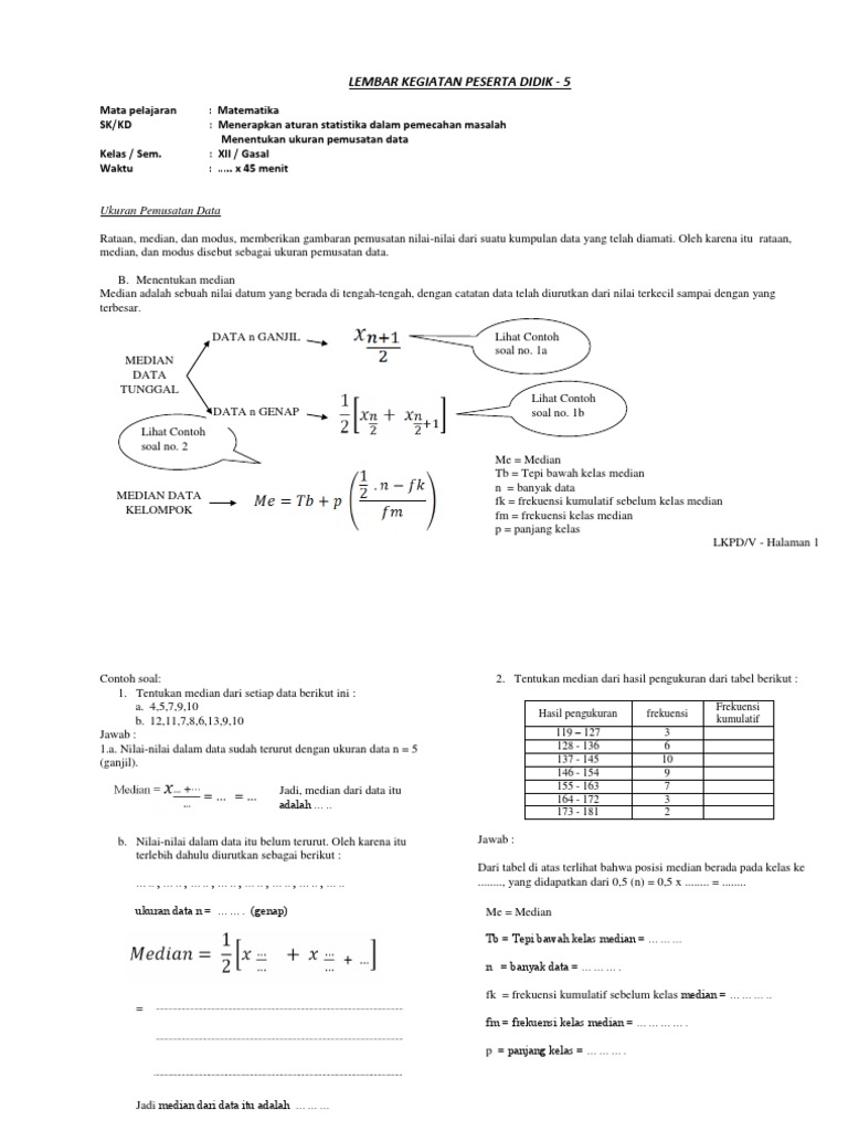 pelajaran matematika modus median mean pdf, word document or powerpoint file formats for free.