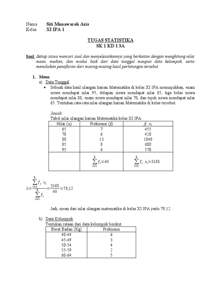 Contoh Soal Statistik Mean Median Modus Data Kelompok Pdf